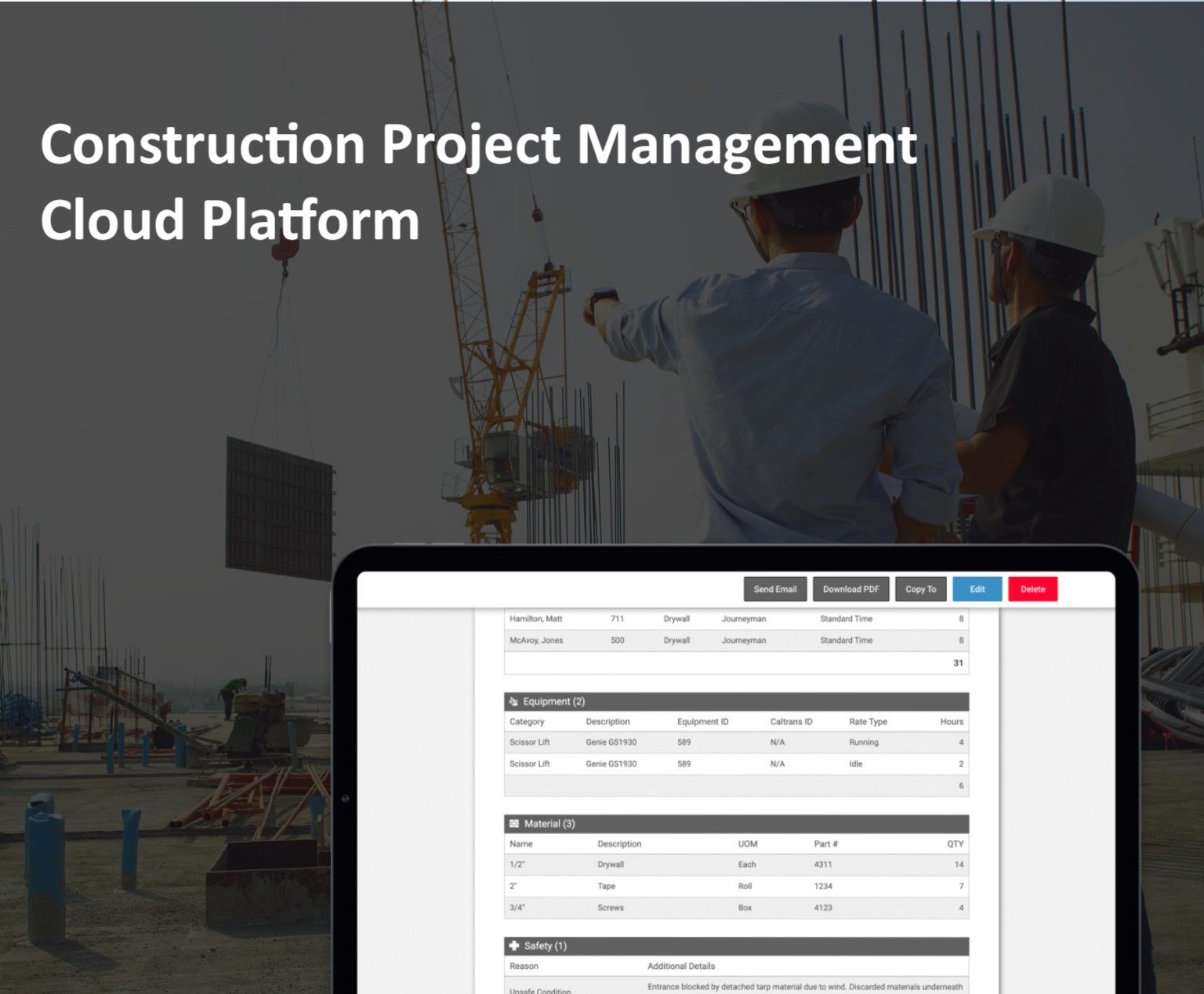 Easily track and manage your project performance, capture time and utilization data around labor, equipment, and materials to deliver powerful insights and rapid daily and weekly reports like timekeeping.